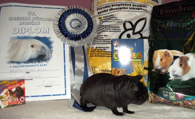 Moc hezká výstava se spoustou skinny morčat a příjemnou změnou posuzovatelky se pro nás stala velmi úspěšnou.
