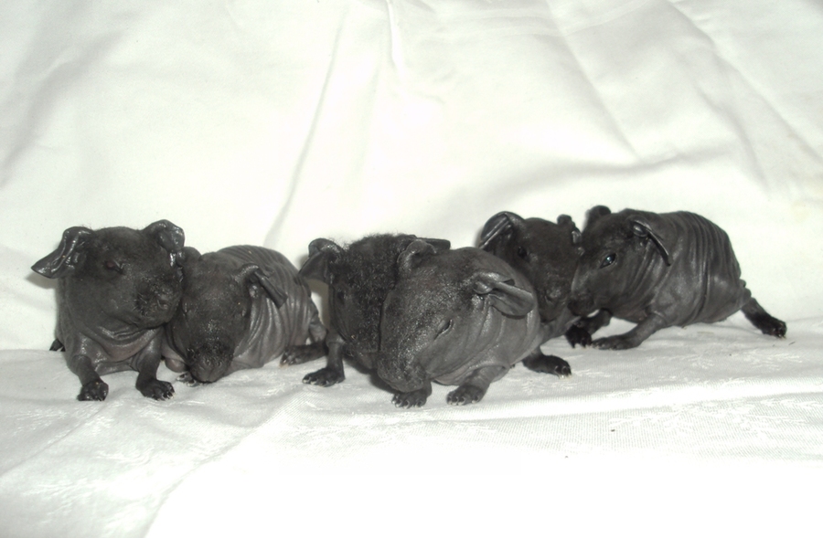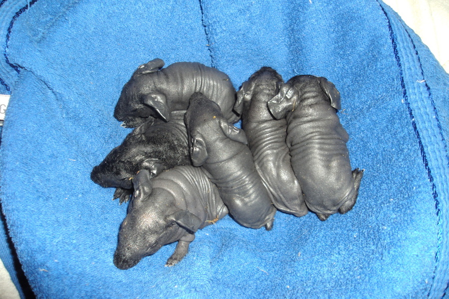 Ač jsme čekali porod později, Solange nás ráno velice překvapila. Slyšela jsem ji v 9:48 vyjeknout bolestí, tak jsem k ní hned běžela. Na světě bylo první mládě- krásná holčička s váhou 83 gramů. Po ní už to šlo velice rychle, Solange se chovala jako zkušená matka. Druhé mládě sameček (82 gramů), třetí samička 75 gramů, pak přišla na svět krásně tmavá chlupatá holčička- 83 gramů ( pokud chloupky opadají, tak bude moc hezká) a pak přišel na svět sameček s váhou 94 gramů. To už jsme mysleli, že je konec, protože se Solange začala čistit a začala jíst. Pak ale přišla na svět ještě jedna samička také s váhou 94 gramů :D To jsme opravdu nečekali :D