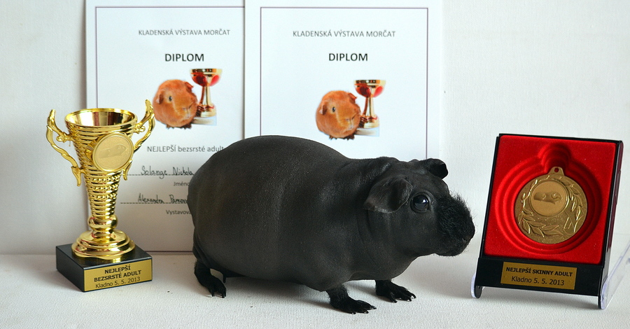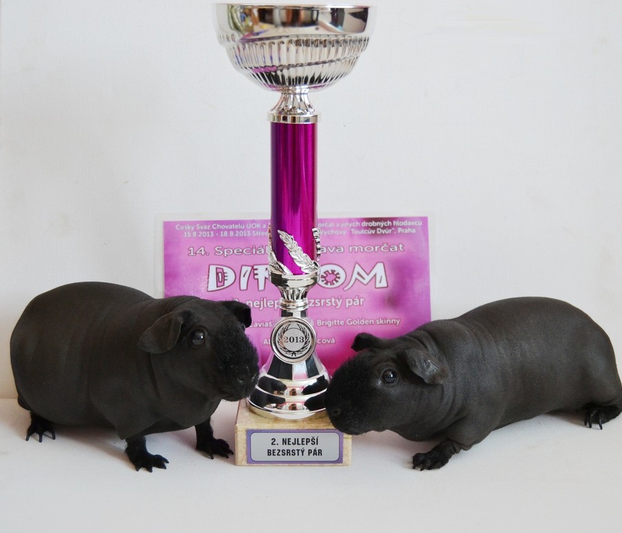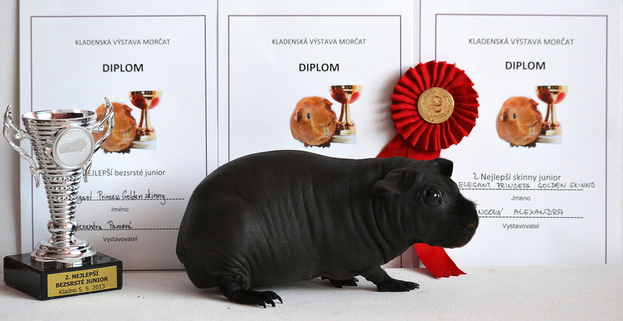 Brigitte Golden skinny:98 b. , 3. kartička na grand., 1. NEJLEPŠÍ SKINNY MORČE Dunkin Donut Golden skinny: 97,5 b. 3. NEJLEPŠÍ MAZLÍK Elegant Princess Golden skinny: 96 b., 1. kartička na šampióna, 2. NEJLEPŠÍ SKINNY BABY
