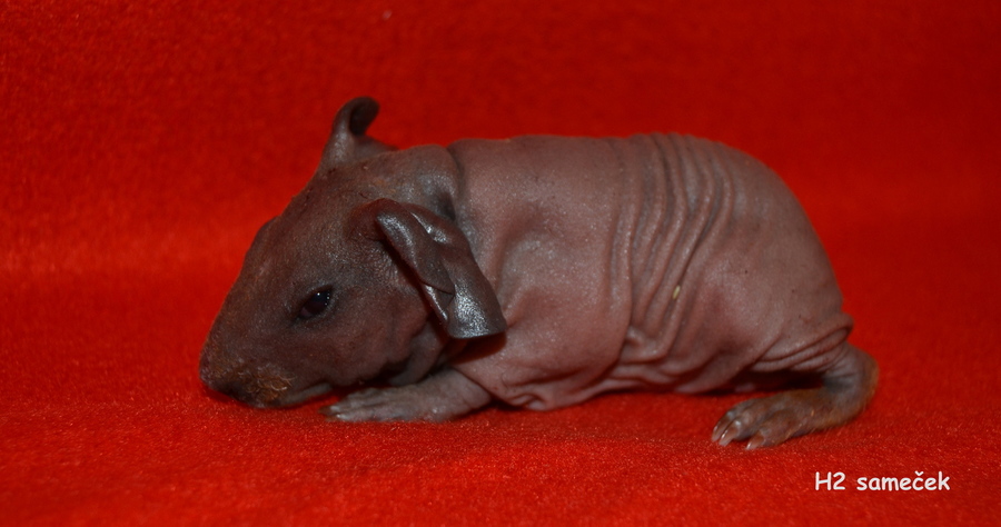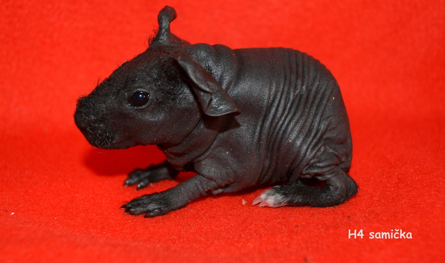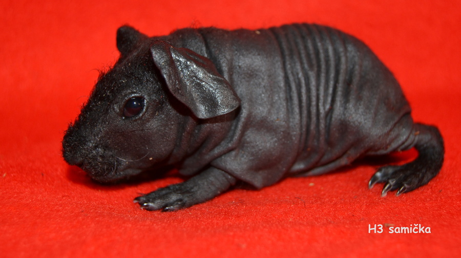 Solange za mé přítomnosti porodila 4 mimina s vyrovaným skórem- 2 holčičky a 2 kluky. Jsem z nich přímo nadšená. Opět svůj porod oddalovala jako vždy a tak jsme jí pečlivě hlídali. První se narodil černý sameček, kterého v šoku nechala ležet nerozbaleného v rohu boxu. Naštěstí jsem rychle zareagovala a malému pomohla. Pak následoval červený sameček s bílou čárkou uprostřed hlavičky- celý po tatínkovi :-) Je tak kouzelný :-)) A konečně jsem se pak dočkala dvou holčiček- černé a černé s bílou (má bílé prstíky na zadní nožičce). Černí skinníci mají krásně tmavou barvu. Těším se, co z nich vyroste :-)