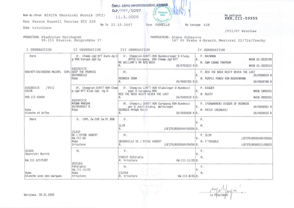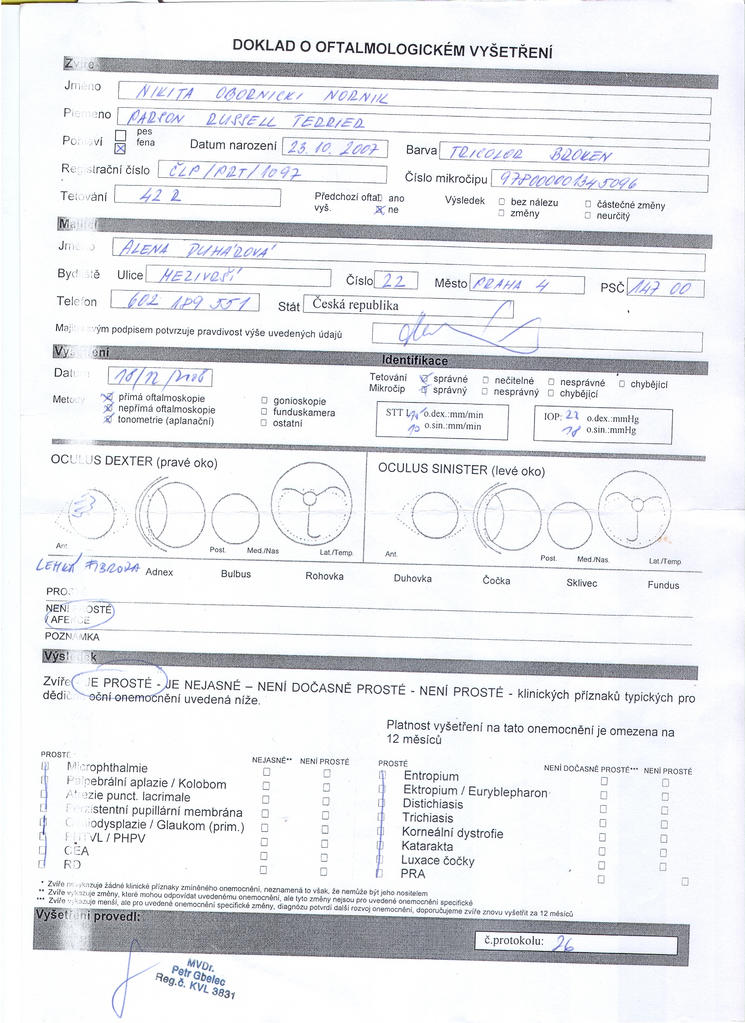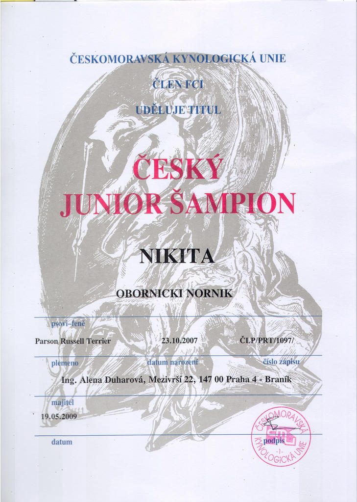 Nikita je zatím mládě a tak zkoušíme od každýho trochu: agility, norování, výstavy. Uvidíme, v čem naše hvězda vynikne:-) Jelikož máme doma i většího psa (Ebbinu), tak se to neobešlo bez úrazu. Teď je však konečně Nikita v pořádku a můžem se do všeho pustit po hlavě. Tak nám držte palce.