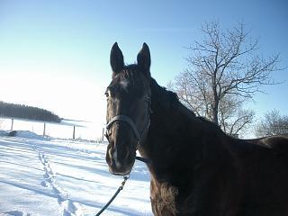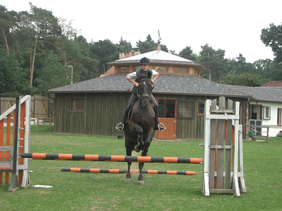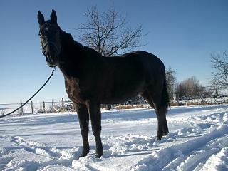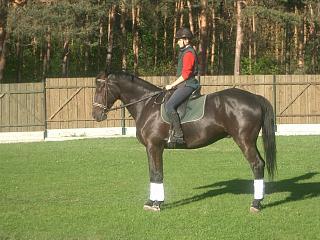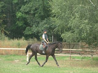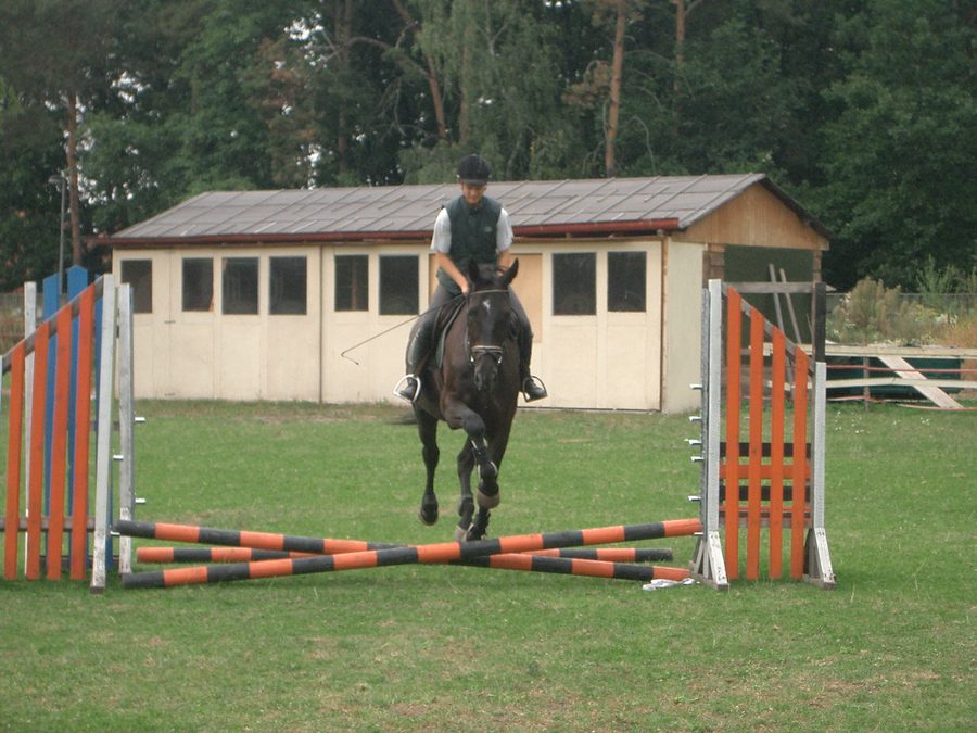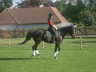 Galvánek je prostě Galvánek,Galvouš,Galvuša,Galví a Galvušídlo a bůhví co všechno ješte je to prostě Galvánek.Je to učitel všech učitelu a prdloušek všech prdloušku.Stojí za každou blbostí za kterou skrýva nějaká lupičárna.Galváno zvládá drezuru takřka do L .Závodila jsem s nim v roce 2004 a jelikžo neměl pro rok 2005 papíry nemohli jsme spolu závodit.A tak jsme skákali a bůhví co všecko.Galváno je schopen přeskákat parkur pouze s vůdčí osobou , která už má něco naježděného jinak z něj zatím skoro každej spadl.Nejradši ho mají začátečníci jelikož jeho klid v duši osloví asi každého kdo se ze začatku docela bojí a abych vám pravdu řekla spadlo z něj mnoho lidí a ja v zime roku 2003 měla lítací sezonu na zem , takže to tohle zvíře , až tak moc bezchybný nebude :)) Ale jinak je to skvělej koník za nic na světě bych ho nevyměnila i když ho ta práce vubec nebaví ...Už absolvoval s Janou a Katkou veřejný trenink v parkuru na Mělníku..